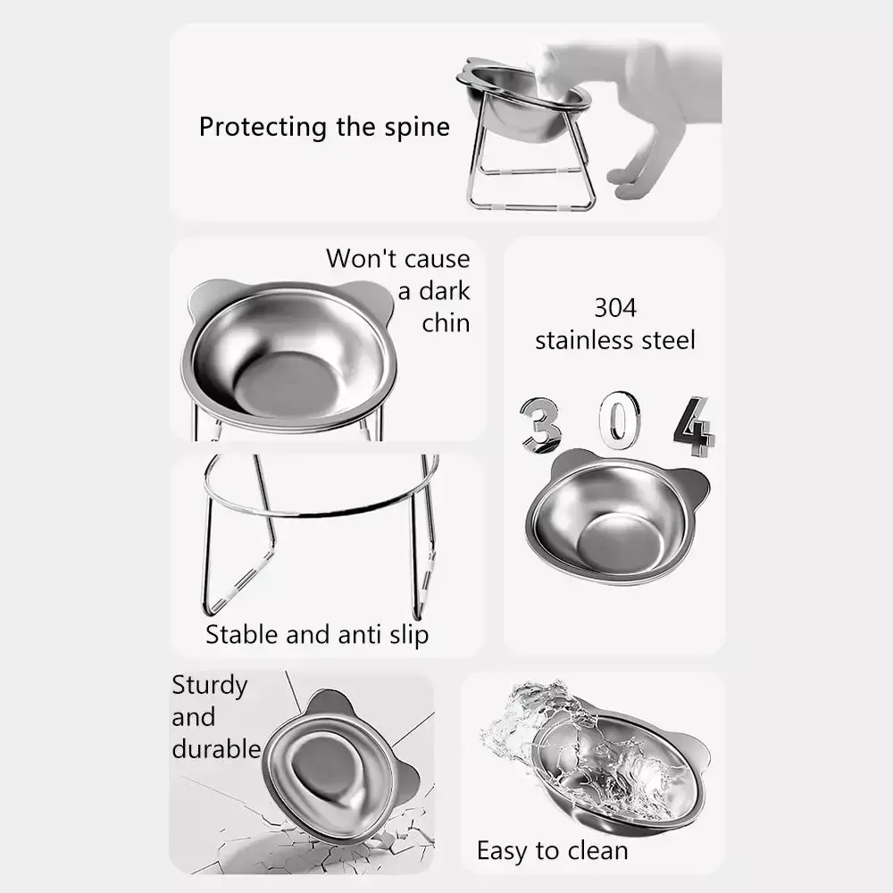 1.Material de aço inoxidável 304: Fabricada em aço inoxidável 304 de alta qualidade, esta tigela para gatos é altamente durável, resistente à ferrugem e construída para durar, garantindo um ambiente de alimentação seguro e saudável para seu animal de estimação.
