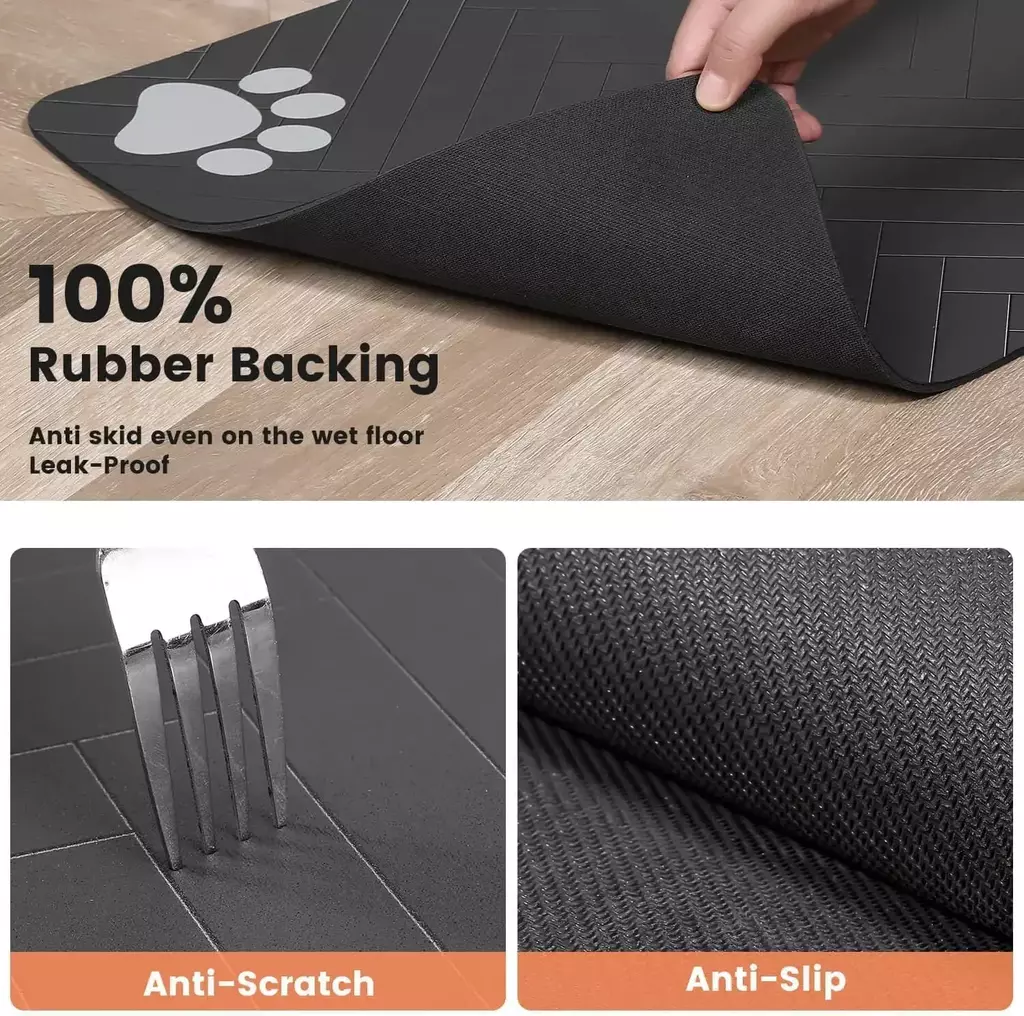 Superabsorvente e anti-manchas: absorve rapidamente respingos de água, leite e ração, evitando patas molhadas e sujeira ao redor das tigelas.